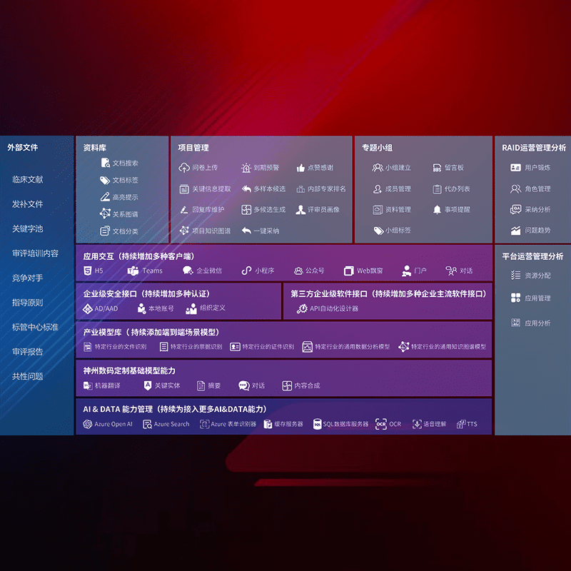 医疗器械产品上市前,,,,要熟悉严格与繁复评审标准,,,,整理分析监管机构指导文件中的海量信息。。企业急需一个智能化解决方案,,提升知识管理效率,,,提高评审通过率,,,以提升其市场竞争力。。
